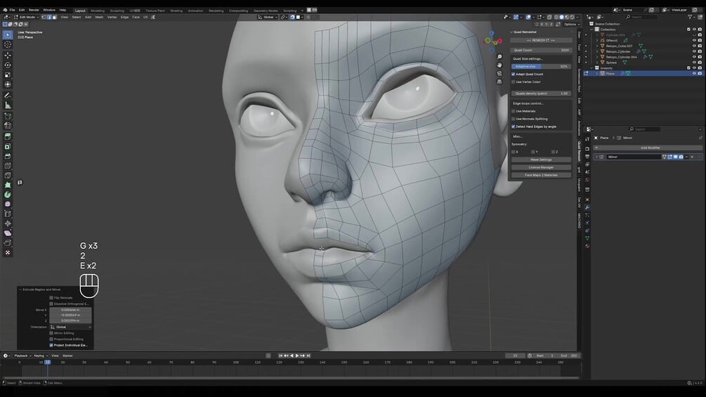 Optimize the model’s polygon count and flow by retopologizing, ensuring a well-structured model that lays a solid foundation for subsequent rigging and animation.