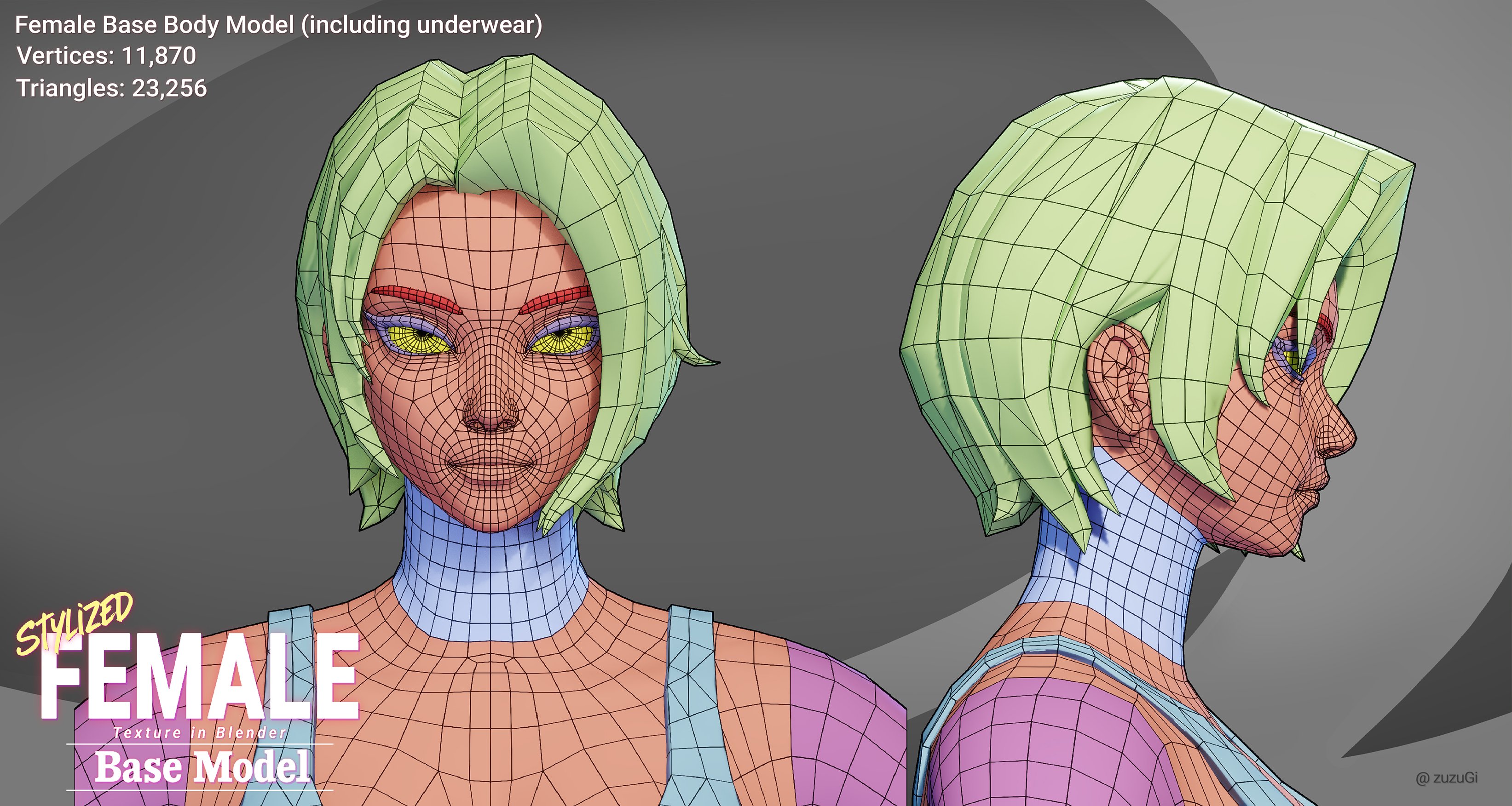 Stylized Kpop Characters – Male & Female Base Body 3D Model Collection | Blender & ZBrush (Commercial Use)