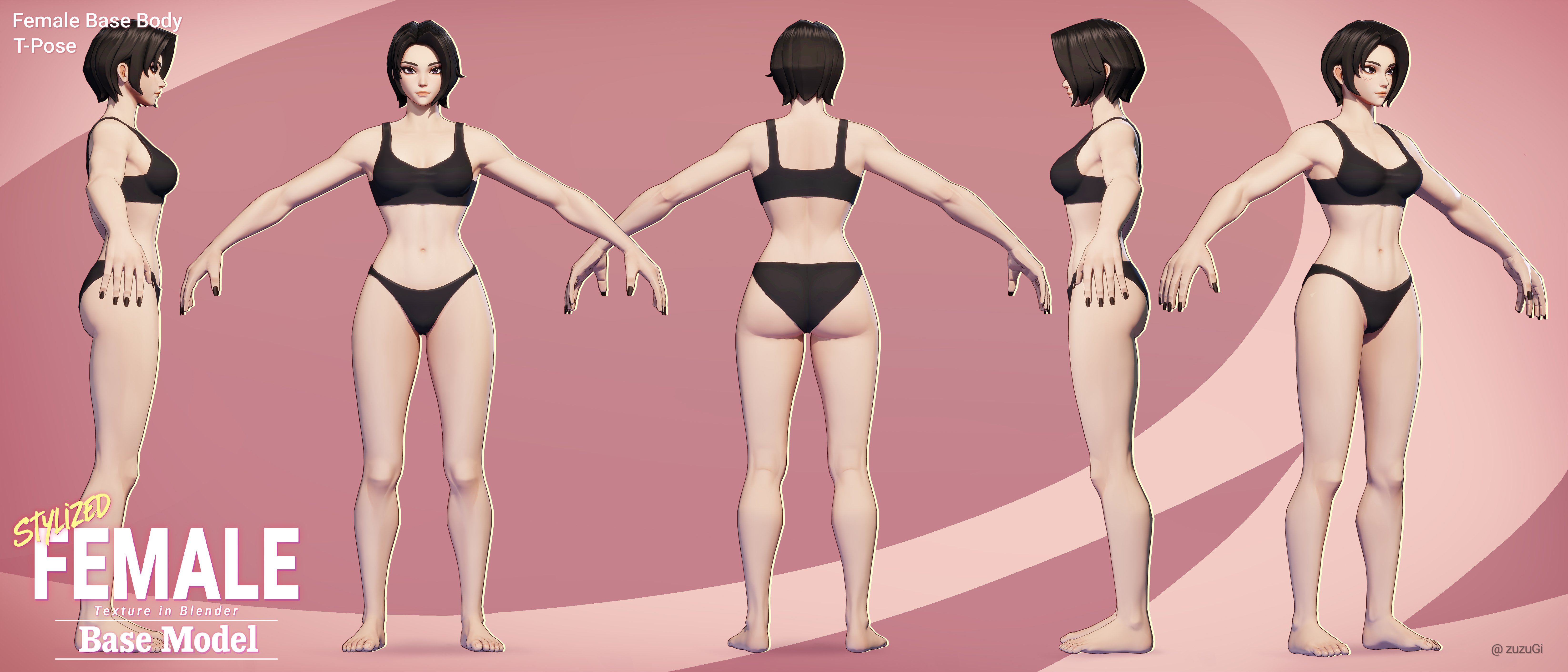 Stylized Kpop Male & Female Base Body 3D Models, ZBrush high-poly sources,Rigged Blender files (with lighting setup, ready to render), 4K clean & tattooed textures (4096×4096), Ucupaint editable layers (Blender source)